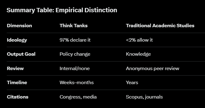 Speaking of which, over 70% of think tank funding comes from donors with explicit political/policy goals which makes their work partisan and non-scientific as opposed to traditional academic studies.