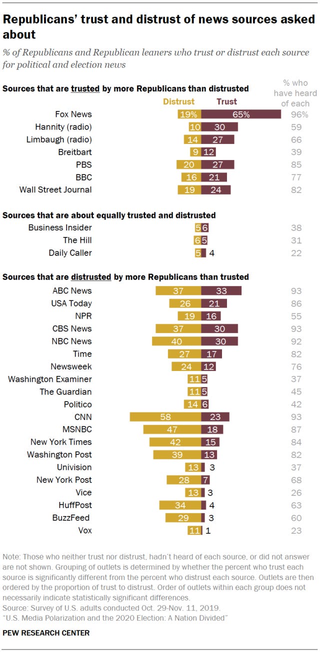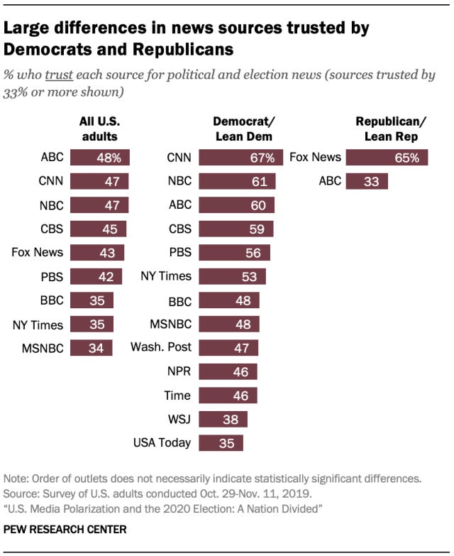 To give you an example, in 2020 The Washington Post was regarded as a partisan Democrat news source, with only 7% consistent Conservative readers.