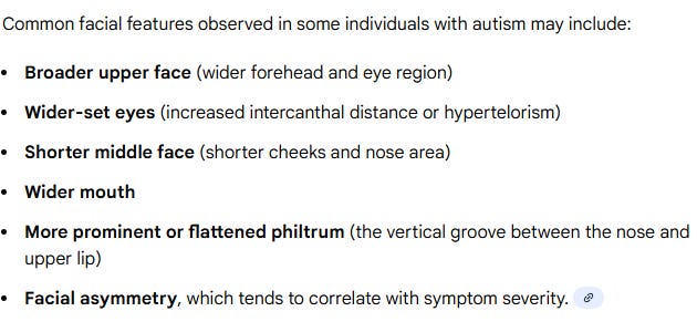 The claimed accuracy of this in estimating the autistic phenotype over 80%. So let me know if you’re autistic and possess all the facial features that are listed here or if you’re not autistic but possessing them. I scored 5/6 and I’m not sure if I’m autistic.