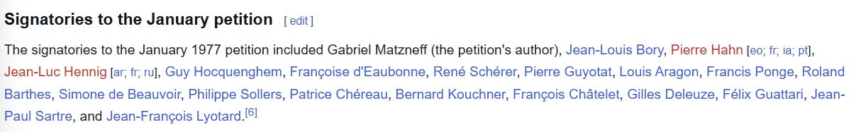 This reminds me of the famous French petition calling for the abolition of the age of consent laws. It enjoyed high support among the elites, yet complete bewilderment from the rest of French’s society.