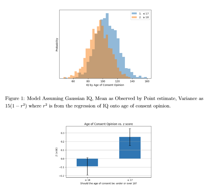 A recent college survey conducted by Joseph Bronski similarly found that individuals who believe the age of consent should be lower than 18 have, on average, IQ scores seven points higher than those who believe it should remain at 18 or even be raised.