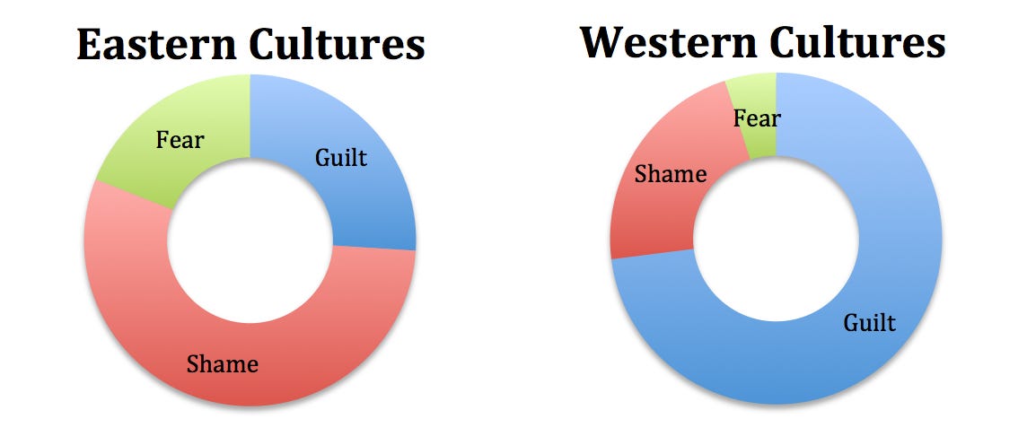 Even beyond the moral foundations, this discrepancy can be observed. For instance, a large study of children in middle school has found that intelligence was not a significant predictor of the children's moral motivation and no correlation between intelligence and the experience of negative moral emotions like guilt (which is the main control culture of orientation of the West).