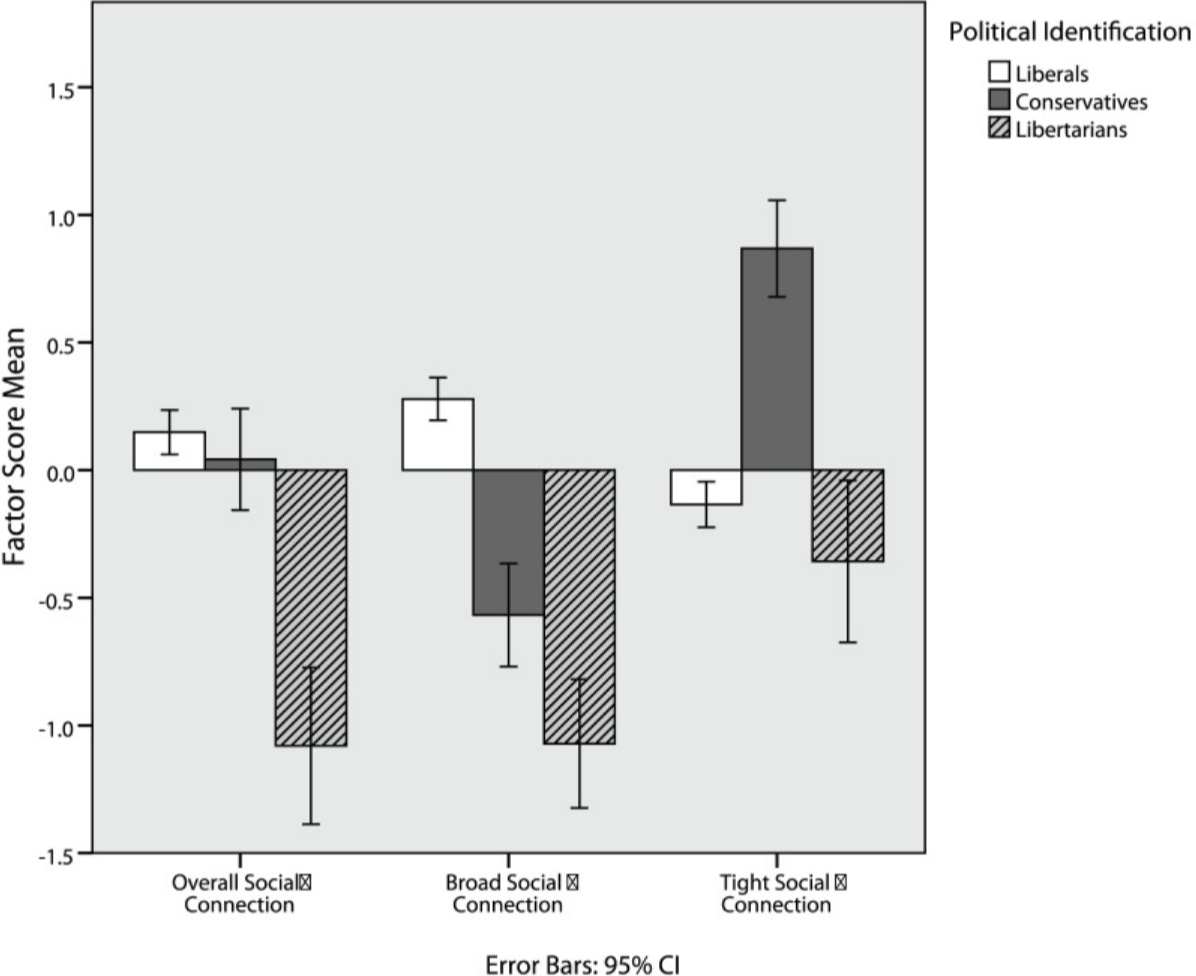 Low Libertarian score on the moral foundations is generally in line with other literature, which highlights the amoral, selfish, and atomized nature of their thought patterns and behavior.